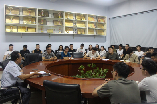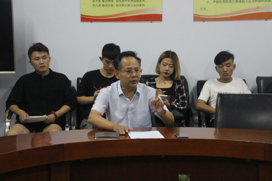 2018年9月14日晚,bwin必赢在音乐楼206会议室,召开主要员工干部会议,部署纪律和卫生整顿活动,公司党总支副书记牛爱之出席会议并讲话,公司辅导员、员工会各部长及以上干部、各班班长参加了会议。